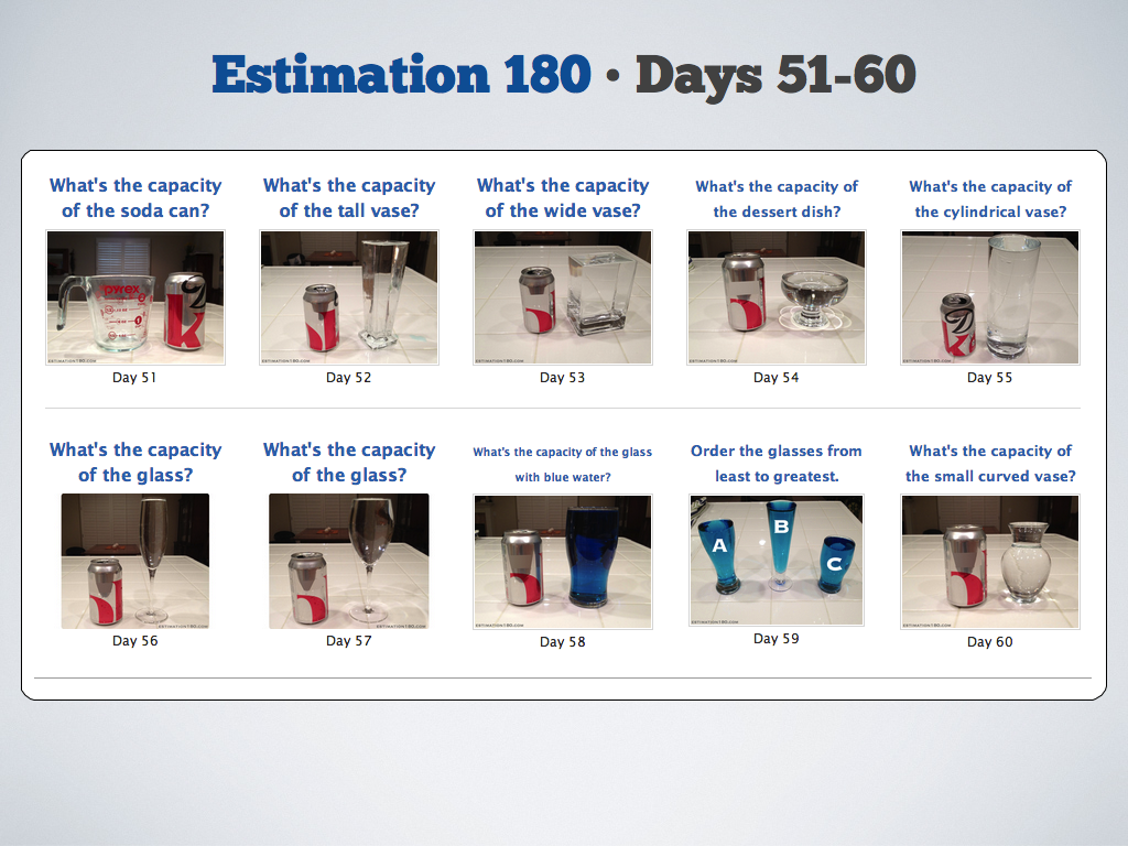 Just like last week, after completing these two official challenges, teachers will share the estimation challenges they created for homework.